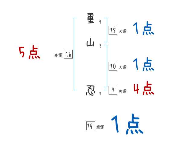 重山忍さんの画数の鑑定結果