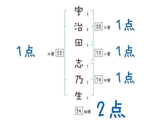 宇治田志乃生さんの画数の鑑定結果