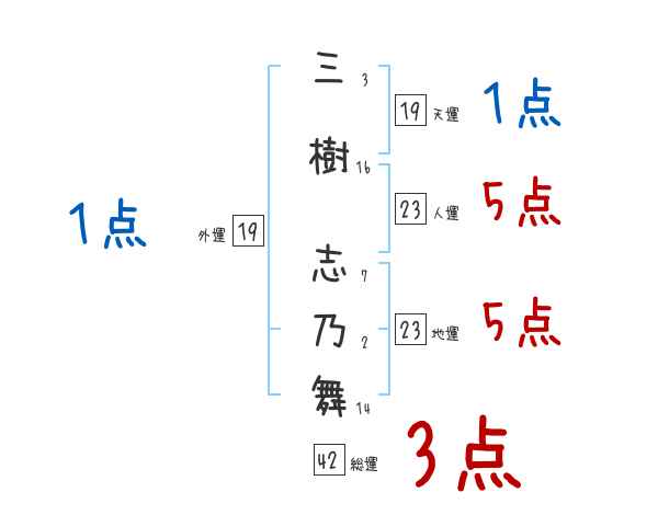 天運![]() | 三樹志乃舞さんの天運は19画の1つ星!優れた才能を持ちますが、協調性が足りないことも。周りの人と協力する事を意識しましょう。 家系が持つ宿命的な運勢を表します。祖先から受け継いだ苗字ですので自分の力が及びません。家柄を象徴します。 |