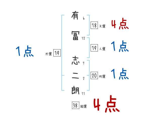 有冨志二朗さんの画数の鑑定結果
