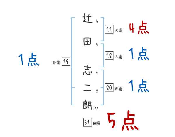 外運![]() | 辻田志二朗さんの外運は19画の1つ星!優れた才能を持ちますが、協調性が足りないことも。周りの人と協力する事を意識しましょう。 生活面を象徴する運勢です。外部から受ける影響力を表し、結婚運、家庭運や職場、環境への順応性を表します。 |