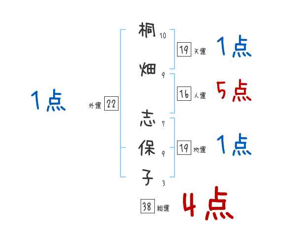 人運![]() | 桐畑志保子さんの人運は16画の5つ星!人望が厚く大きく発展する。逆転成功が見える。 性格や才能などを表す2番目に重要な運勢です。人間関係や協調性、社会的な成功に影響します。主に20歳から50歳ぐらいまでの中年期の運勢を表します。 |