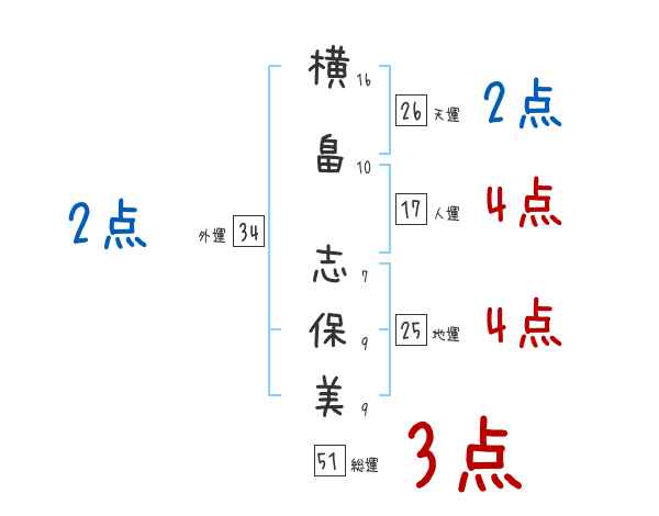 横畠志保美さんの画数の鑑定結果