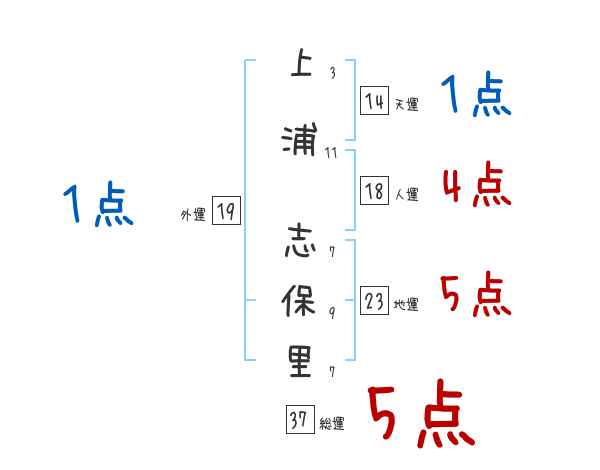 外運![]() | 上浦志保里さんの外運は19画の1つ星!優れた才能を持ちますが、協調性が足りないことも。周りの人と協力する事を意識しましょう。 生活面を象徴する運勢です。外部から受ける影響力を表し、結婚運、家庭運や職場、環境への順応性を表します。 |