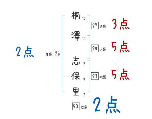 桐澤志保里さんの画数の鑑定結果