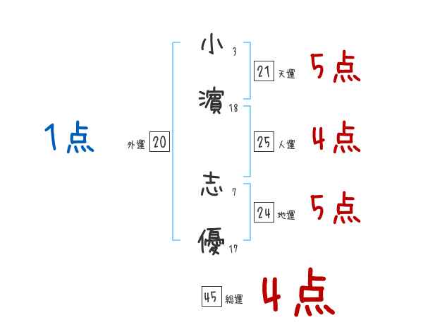 小濵志優さんの画数の鑑定結果