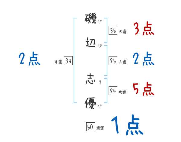 磯辺志優さんの画数の鑑定結果