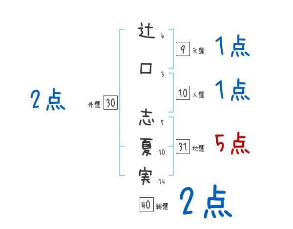 天運![]() | 辻口志夏実さんの天運は9画の1つ星!消極的で才能を発揮することが苦手なことも。周りの意見に耳を傾けましょう。 家系が持つ宿命的な運勢を表します。祖先から受け継いだ苗字ですので自分の力が及びません。家柄を象徴します。 |
