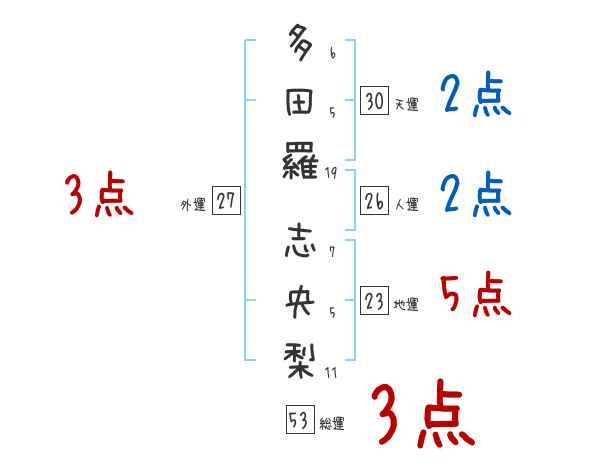 多田羅志央梨さんの画数の鑑定結果