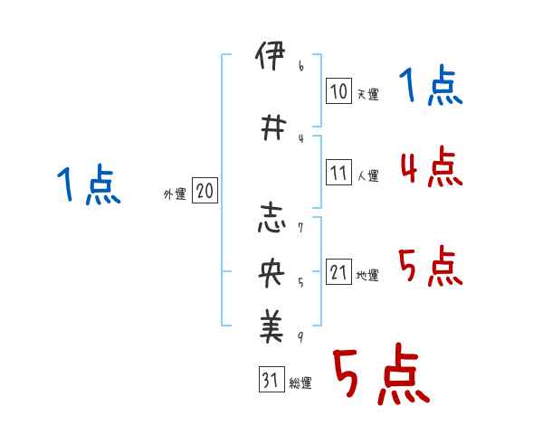 天運![]() | 伊井志央美さんの天運は10画の1つ星!不安を感じやすい傾向。ストレスを抱えないように注意しましょう。 家系が持つ宿命的な運勢を表します。祖先から受け継いだ苗字ですので自分の力が及びません。家柄を象徴します。 |