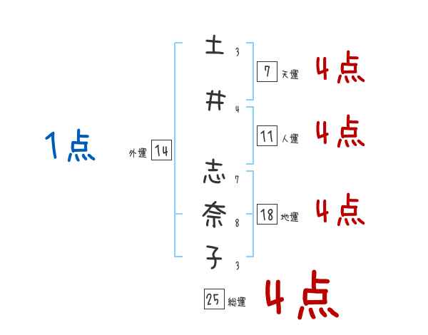 土井志奈子さんの画数の鑑定結果