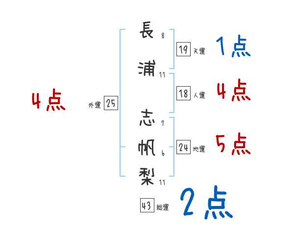 長浦志帆梨さんの画数の鑑定結果