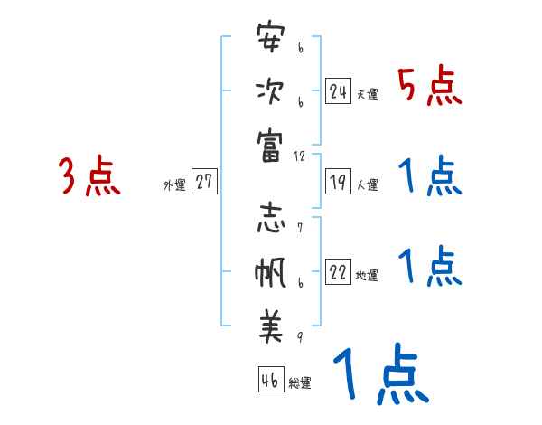 安次富志帆美さんの画数の鑑定結果