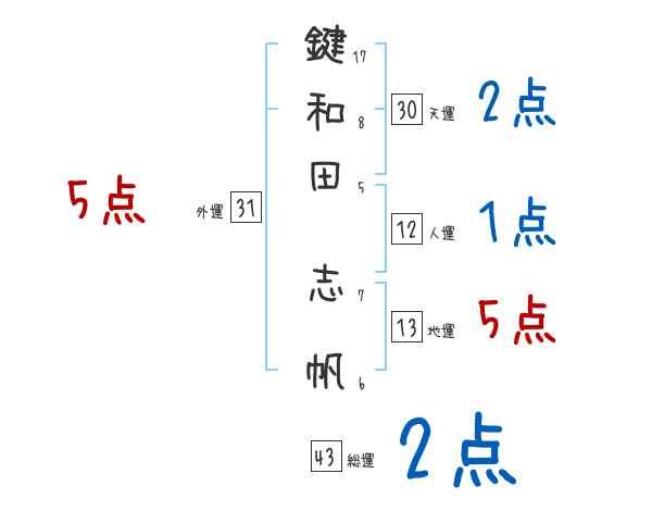 鍵和田志帆さんの画数の鑑定結果