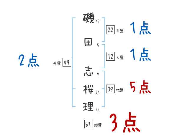 磯田志桜理さんの画数の鑑定結果