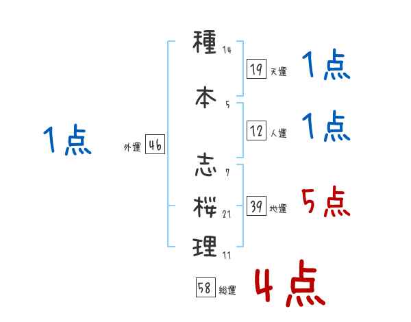 天運![]() | 種本志桜理さんの天運は19画の1つ星!優れた才能を持ちますが、協調性が足りないことも。周りの人と協力する事を意識しましょう。 家系が持つ宿命的な運勢を表します。祖先から受け継いだ苗字ですので自分の力が及びません。家柄を象徴します。 |