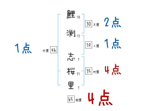 鯉渕志桜里さんの画数の鑑定結果