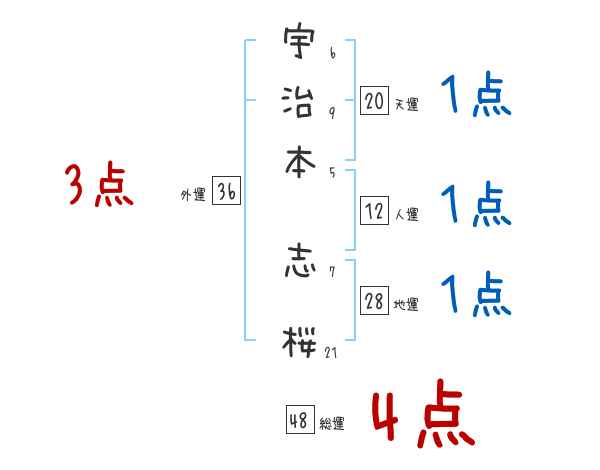 宇治本志桜さんの画数の鑑定結果