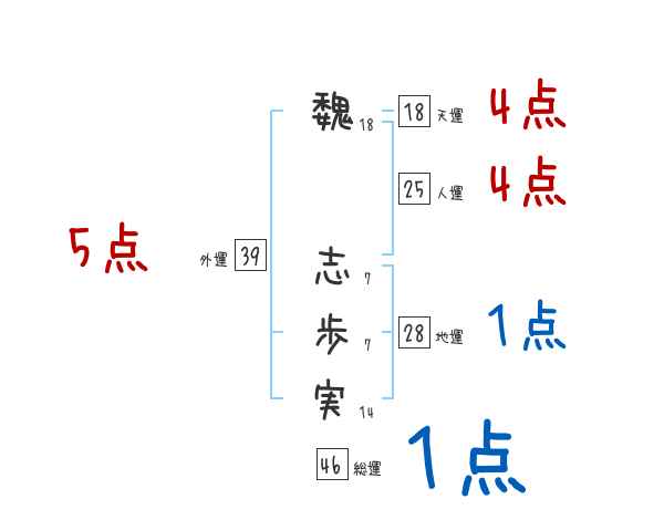 外運![]() | 魏志歩実さんの外運は39画の5つ星!社交性に優れ人望が厚い。人の上に立ち成功する。 生活面を象徴する運勢です。外部から受ける影響力を表し、結婚運、家庭運や職場、環境への順応性を表します。 |