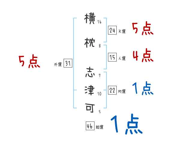 外運![]() | 横枕志津可さんの外運は31画の5つ星!社交性があり判断力に優れる。順風満帆な人生で円満な生活。 生活面を象徴する運勢です。外部から受ける影響力を表し、結婚運、家庭運や職場、環境への順応性を表します。 |