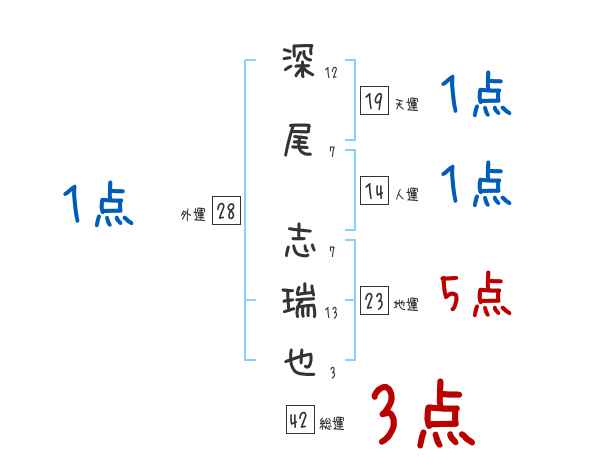 外運![]() | 深尾志瑞也さんの外運は28画の1つ星!家庭環境に注意。スポーツで活躍できる能力があるかも。 生活面を象徴する運勢です。外部から受ける影響力を表し、結婚運、家庭運や職場、環境への順応性を表します。 |