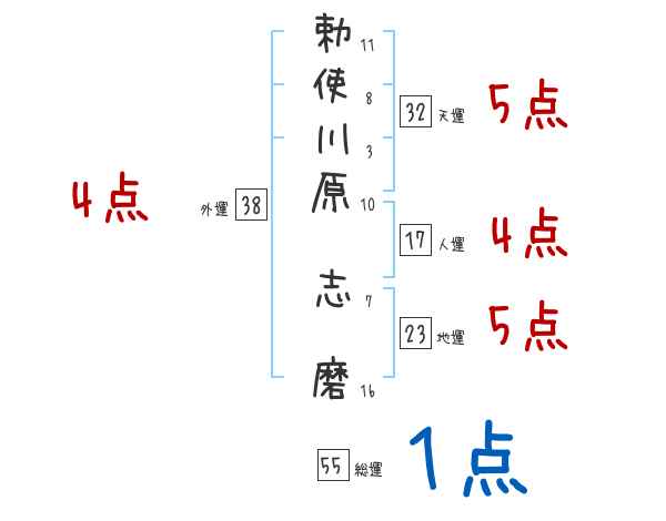 勅使川原志磨さんの画数の鑑定結果