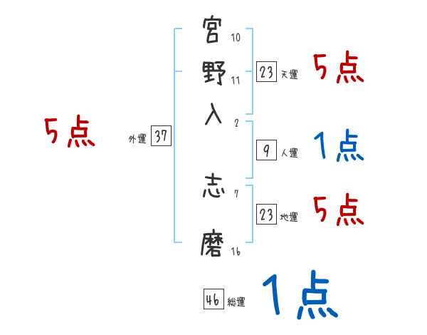 宮野入志磨さんの画数の鑑定結果