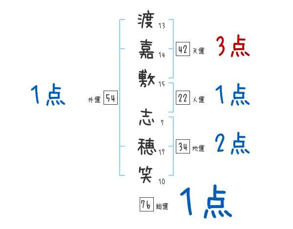 渡嘉敷志穂笑さんの画数の鑑定結果