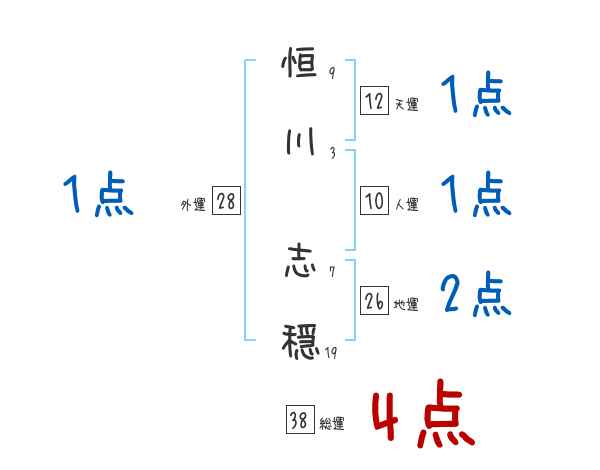 外運![]() | 恒川志穏さんの外運は28画の1つ星!家庭環境に注意。スポーツで活躍できる能力があるかも。 生活面を象徴する運勢です。外部から受ける影響力を表し、結婚運、家庭運や職場、環境への順応性を表します。 |