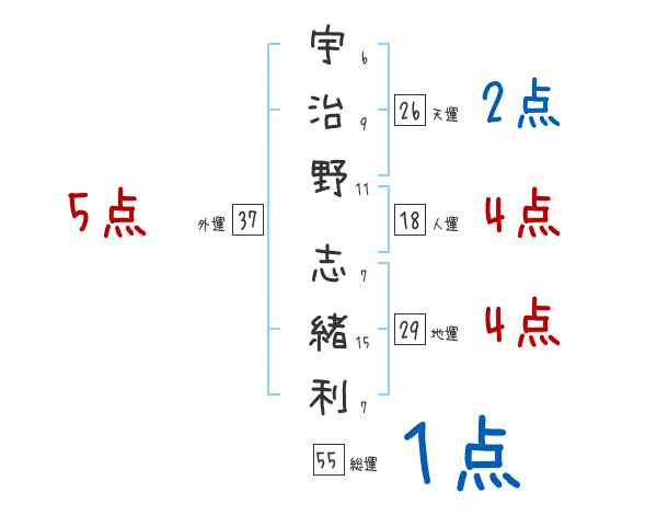 人運![]() | 宇治野志緒利さんの人運は18画の4つ星!情熱的で剛気。忍耐力があり信頼される。 性格や才能などを表す2番目に重要な運勢です。人間関係や協調性、社会的な成功に影響します。主に20歳から50歳ぐらいまでの中年期の運勢を表します。 |