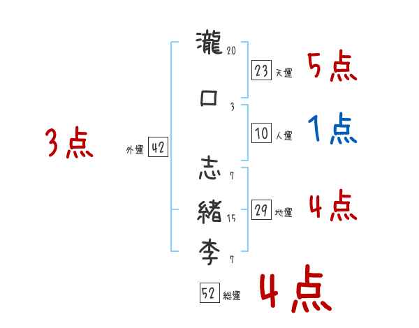 外運![]() | 瀧口志緒李さんの外運は42画の3つ星!病気に注意。多芸であるが消極的でおとなしい。 生活面を象徴する運勢です。外部から受ける影響力を表し、結婚運、家庭運や職場、環境への順応性を表します。 |
