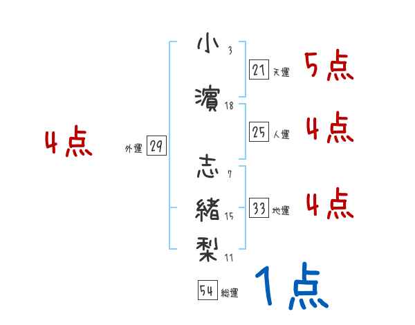 小濵志緒梨さんの画数の鑑定結果