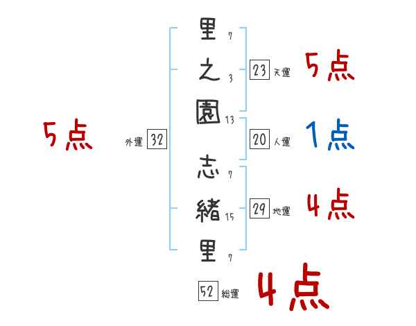 総運![]() | 里之園志緒里さんの総運は52画の4つ星!先見性と独創性に優れ考える力がある。強運の持ち主。 あなたの人生を表す1番重要な運勢です。生涯を通じて影響する総合運となり、主に50歳以降の晩年期に影響を及ぼします。 |