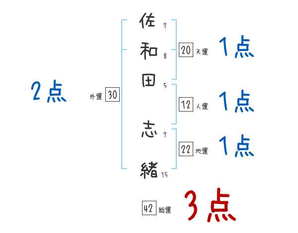 総運![]() | 佐和田志緒さんの総運は42画の3つ星!病気に注意。多芸であるが消極的でおとなしい。 あなたの人生を表す1番重要な運勢です。生涯を通じて影響する総合運となり、主に50歳以降の晩年期に影響を及ぼします。 |