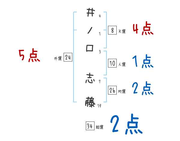 外運![]() | 井ノ口志藤さんの外運は24画の5つ星!家庭運が良く順調な人生。金運にも恵まれる。 生活面を象徴する運勢です。外部から受ける影響力を表し、結婚運、家庭運や職場、環境への順応性を表します。 |