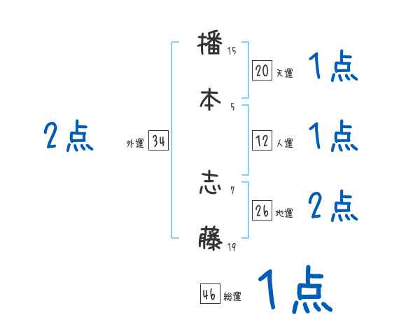 播本志藤さんの画数の鑑定結果