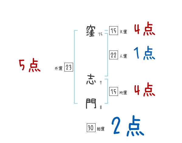 窪志門さんの画数の鑑定結果