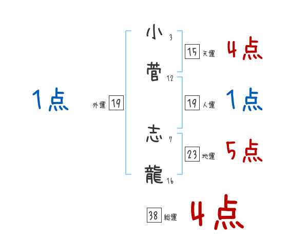 小菅志龍さんの画数の鑑定結果