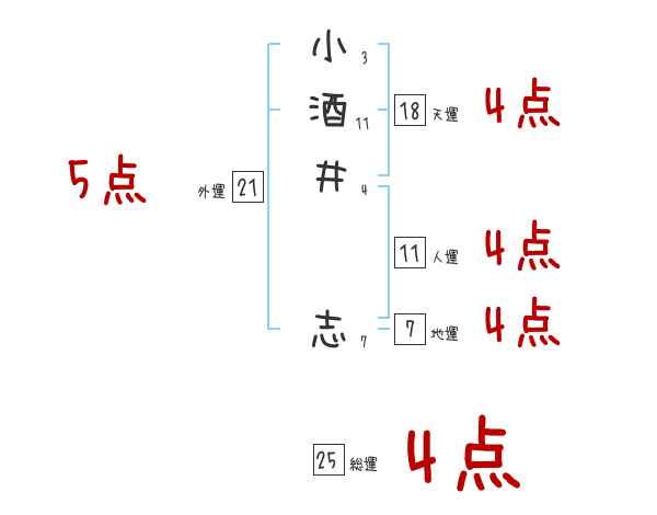 小酒井志さんの画数の鑑定結果