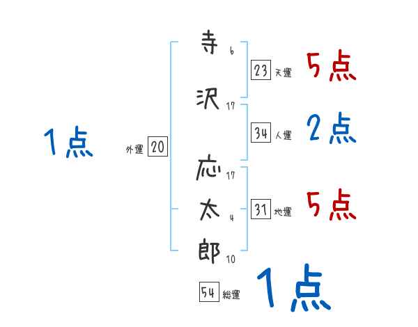 寺沢応太郎さんの画数の鑑定結果