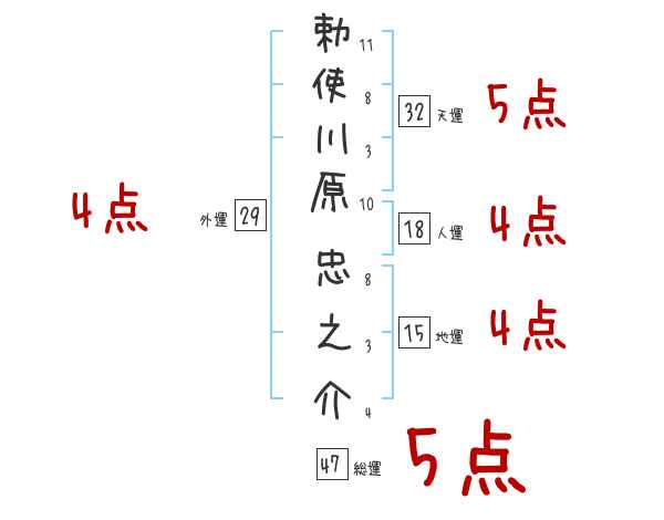 勅使川原忠之介さんの画数の鑑定結果