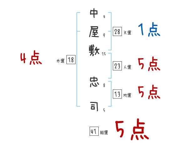 中屋敷忠司さんの画数の鑑定結果