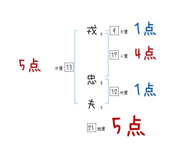 戎忠夫さんの画数の鑑定結果