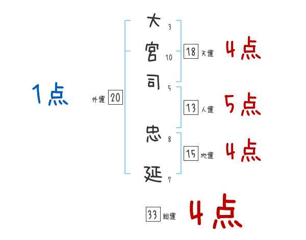 大宮司忠延さんの画数の鑑定結果