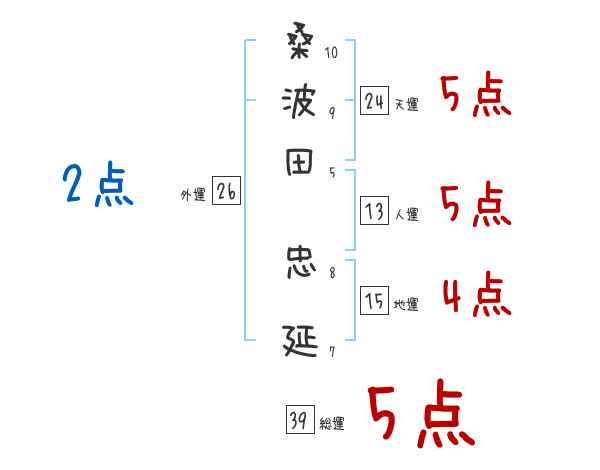 桑波田忠延さんの画数の鑑定結果
