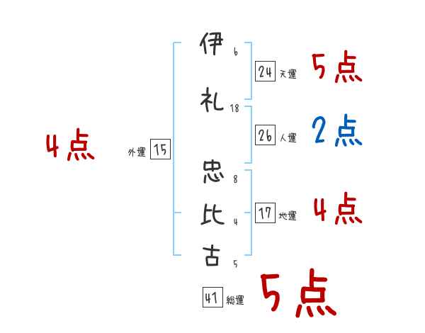 天運![]() | 伊礼忠比古さんの天運は24画の5つ星!家庭運が良く順調な人生。金運にも恵まれる。 家系が持つ宿命的な運勢を表します。祖先から受け継いだ苗字ですので自分の力が及びません。家柄を象徴します。 |