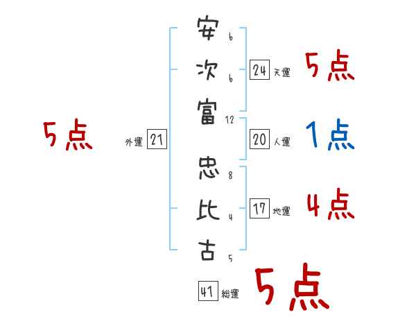 安次富忠比古さんの画数の鑑定結果