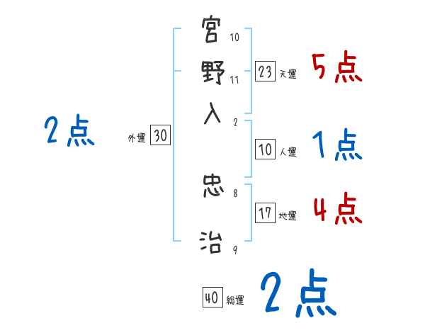 宮野入忠治さんの画数の鑑定結果
