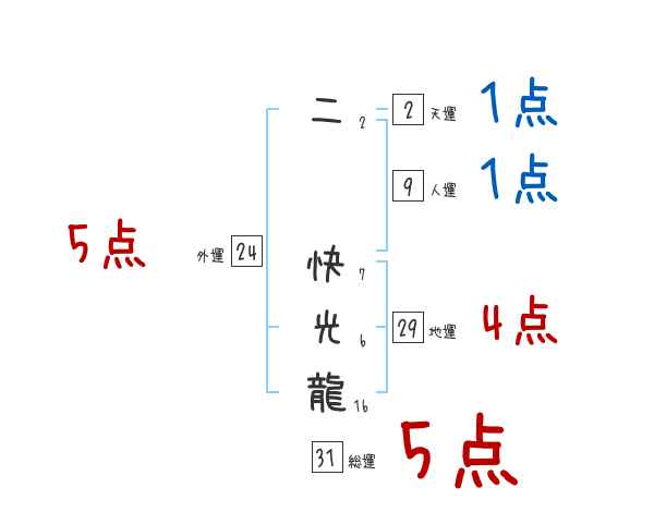 二快光龍さんの画数の鑑定結果
