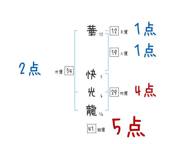 人運![]() | 華快光龍さんの人運は19画の1つ星!優れた才能を持ちますが、協調性が足りないことも。周りの人と協力する事を意識しましょう。 性格や才能などを表す2番目に重要な運勢です。人間関係や協調性、社会的な成功に影響します。主に20歳から50歳ぐらいまでの中年期の運勢を表します。 |